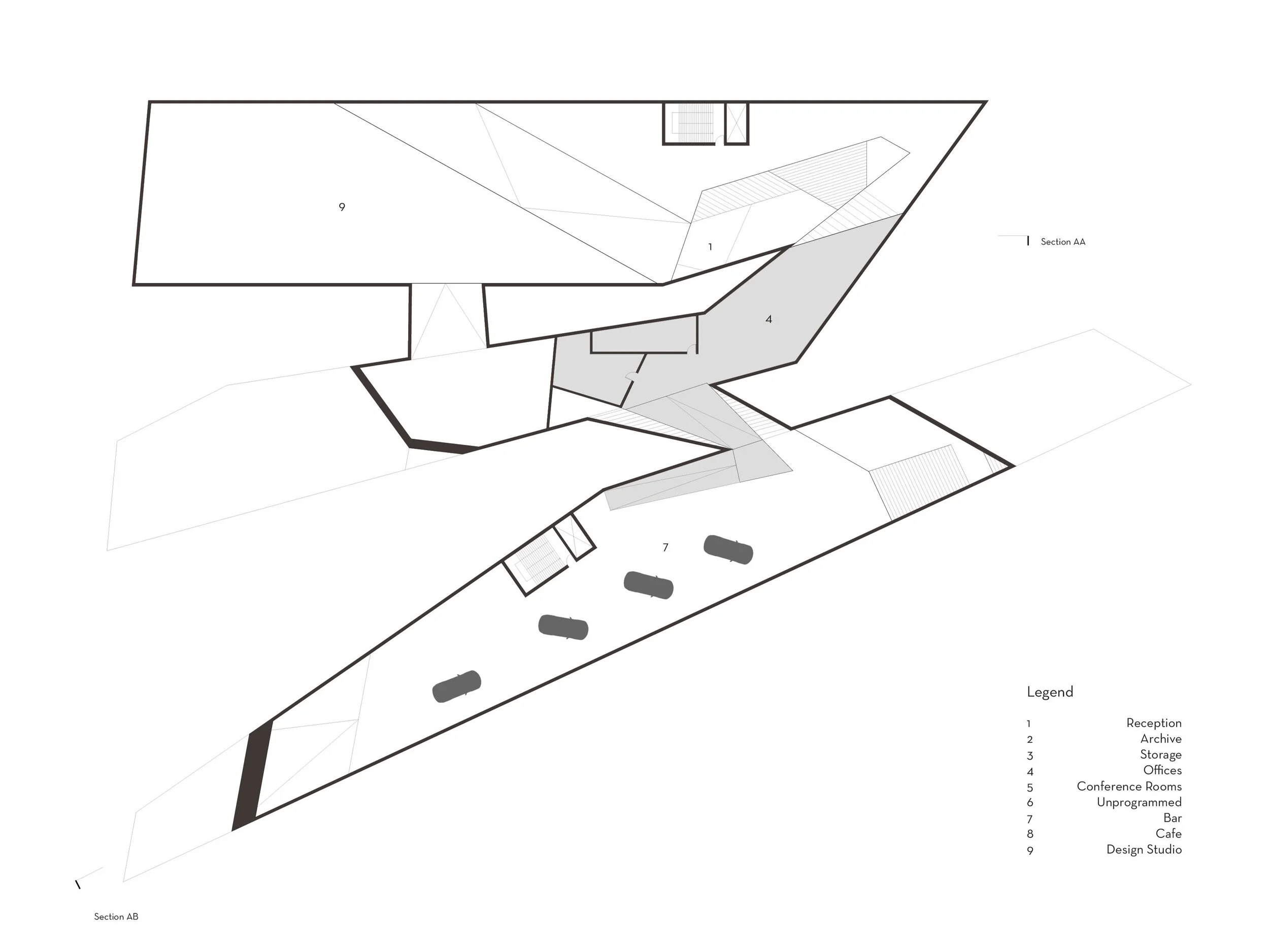 The site splits into two parts - Public & Private, all mediated by one space in the middle. There also exists a path through the site connecting the two ends.